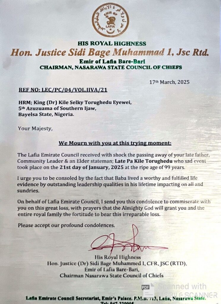 Recall that Pa Kile Torughedi, passed on 20th January, 2025 after a brief illness and was buried on the 4th April 2025 at his home town in Southern Ijaw LGA of Bayelsa State. The burial attracted many traditional ruler, royal fathers, powerful politicians and eminent dignitaries from across Nigeria and beyond.